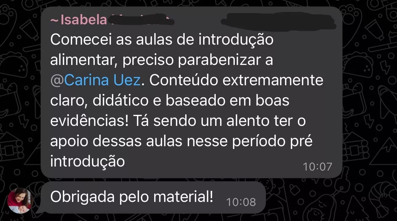 Eu vou estar contigo em cada passo, te ajudando a construir uma relação leve, respeitosa e saudável com a comida — desde os primeiros dias até a fase em que teu filho estiver comendo de tudo.