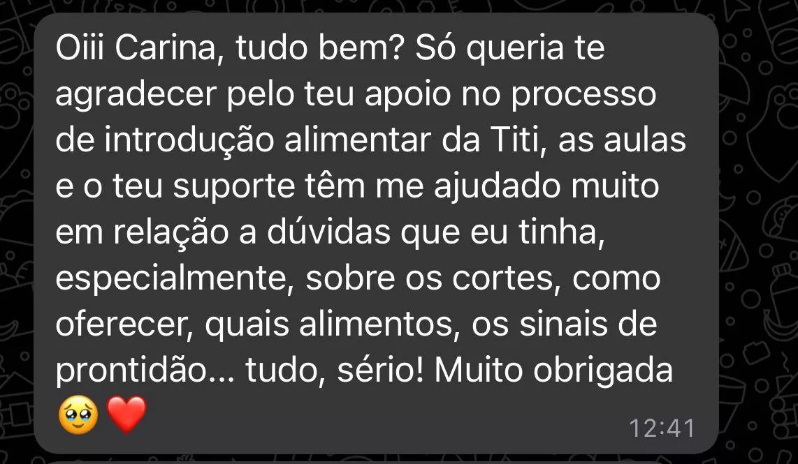 Esses são relatos reais de quem já começou essa jornada comigo e transformou a alimentação dos pequenos com leveza e afeto: